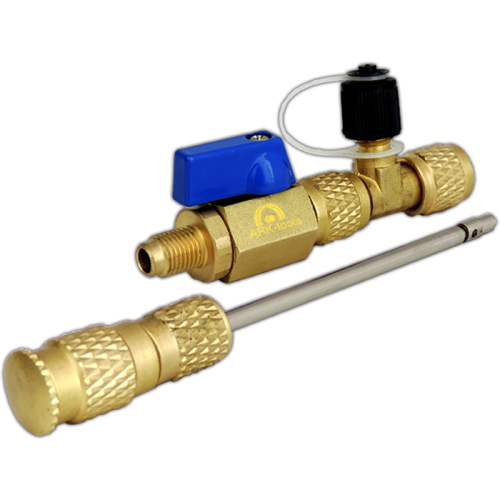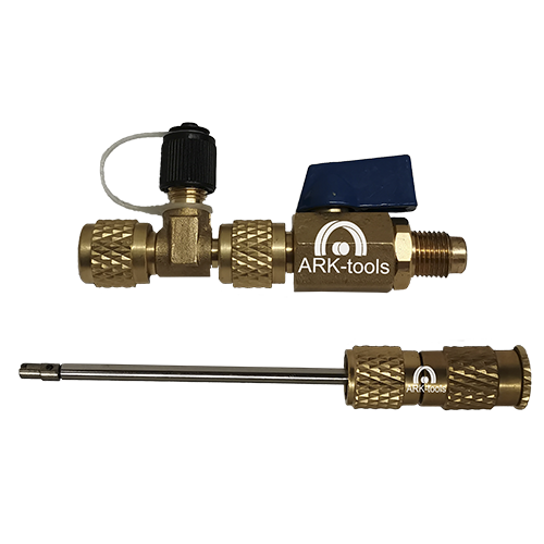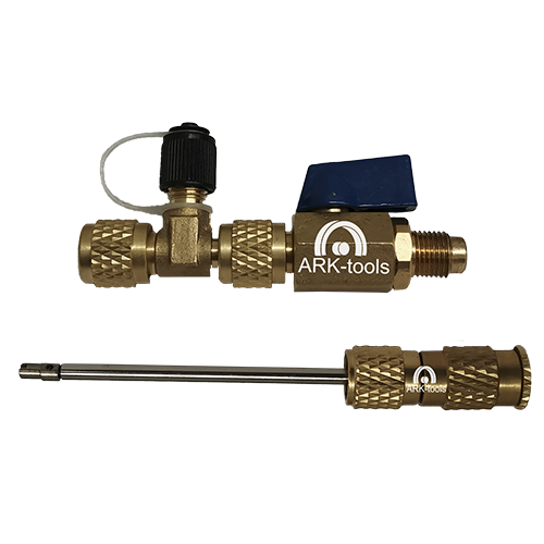 Conjunto de accesorios para la extracción del pivote (alma) la forma mas facil y sencilla de cambiar pivote sin perder refrigerante y evitar fugas de refrigerante vienen en conexión de 1/4"