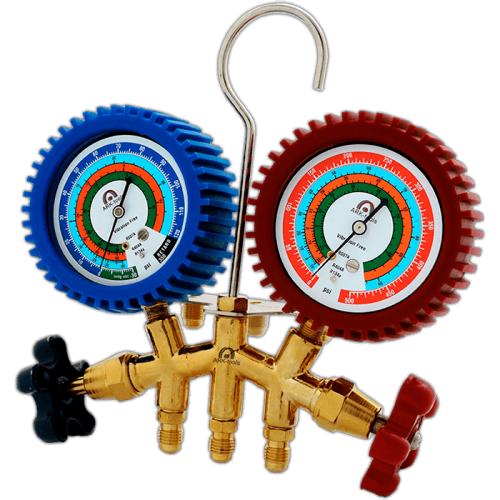 Manifold angular R134a mangueras 36" con protectores y cople automotriz
