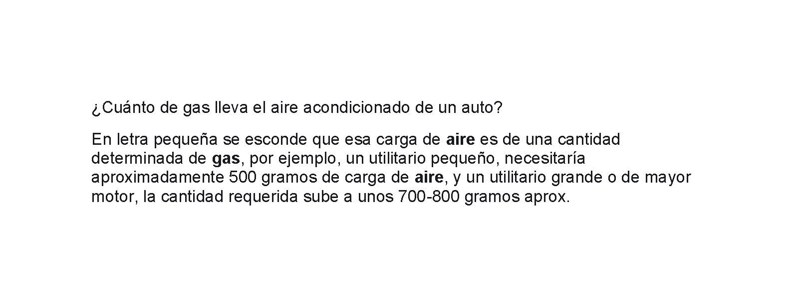 ¿Cuánto de gas lleva el aire acondicionado de un auto?